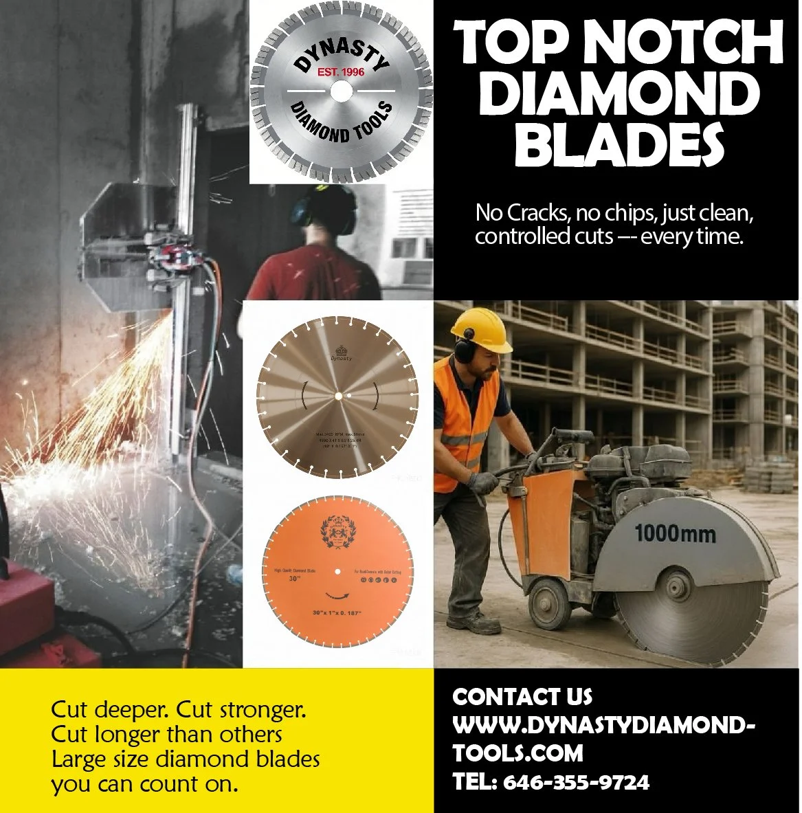 30 years of serving the construction industry has witnessed how Dynasty has become a very well known diamond tools supplier for its blades, core drill bits and cup wheels.